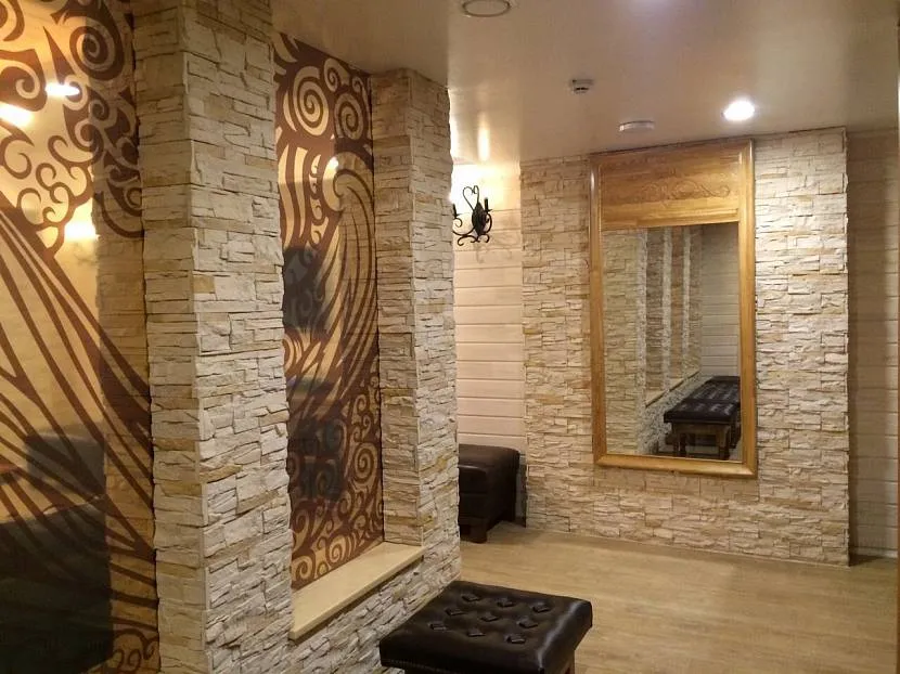 Данная облицовка придает коридорному пространству некой объемности. Для того, чтобы ее фактура не потеряла выразительности, предпочтительнее декорировать материалом только одну плоскость или создавать определенные акценты.