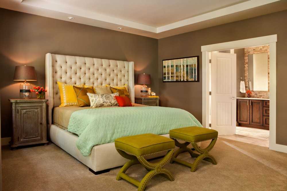 при выборе цветовой гаммы пуфиков для помещения необходимо учитывать тон напольного покрытия и покрывала на кровати. Все эти элементы должны составлять ансамбль;