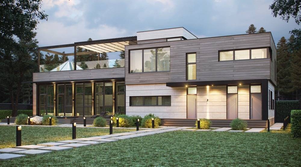 Облицовочные панели, независимо от состава, имеют внешний вид, с изумительной точностью имитирующую натуральную древесину (сосну, дуб, лиственницу или кедр). С помощью такой облицовки вы можете декорировать дом в любом выбранном стиле — классическом, модерн, прованс или фахверк. Фасад дома под дерево характеризуется следующими особенностями: