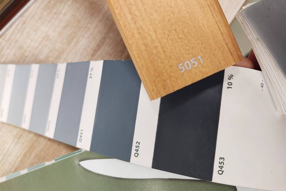Чтобы определиться с цветом, мы с женой поехали в «Леруа Мерлен» и на пробниках подобрали цветовую гамму будущего планкена и дранки — цвета Q453 по палитре «Тиккурила» и цвет 5051 соответственно. Это был условный подбор, ведь на пробниках все выглядит иначе, чем на реальном доме. Тем не менее с цветом мы попали в точку