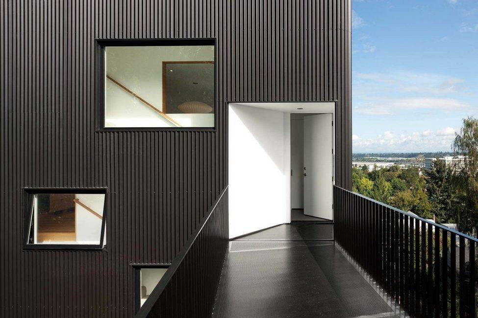 Металл — относительно дорогой материал, от цены которого напрямую зависит качество получившегося фасада. Обладает следующими преимуществами: