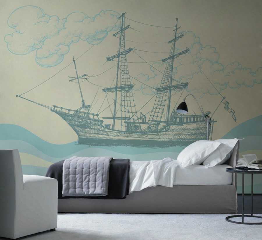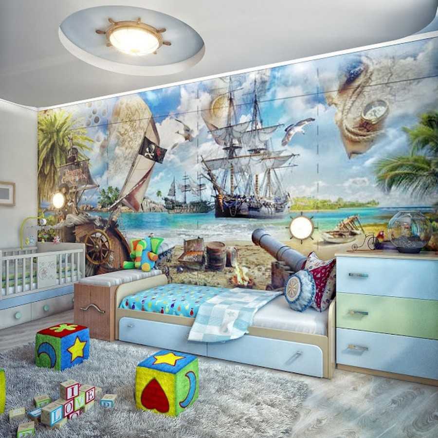 Мальчики с детства проявляют интерес к технике. Они увлекаются самолетами или машинами, роботами и мотоциклами. Комнату юного железнодорожника дополнит поезд. Для детской комнаты в морском стиле уместны корабли (военные, пассажирские, лодки, средневековые парусники). Склонным к созиданию детям нравятся изображения конструктора Лего.
