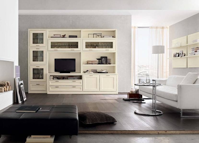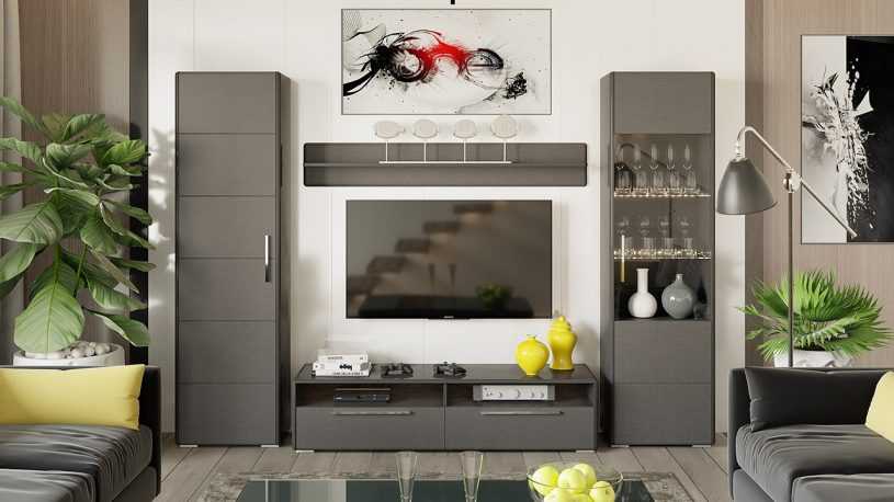 Фактически в состав модульной гостиной могут входить многочисленные элементы, но среди основных отметим следующие: