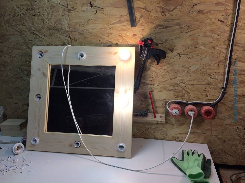 Хлопоты по постановке света для наложения косметики более умозрительные, а физические сводятся к закупкам комплектующих. Но вот раму для зеркала с подсветкой нужно делать самому, иначе к чему весь этот сыр-бор? Ее конструкцию традиционно копируют с театральных гримировочных зеркал; патроны ламп утапливаются в раму по венчик. Но физических, технических, физиологических и др. объективных причин этому нет. Есть всего одна, и скорее историческая – гастроли.