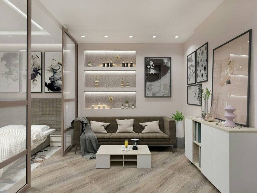 Модные цвета для маленькой гостиной, совмещенной со спальней