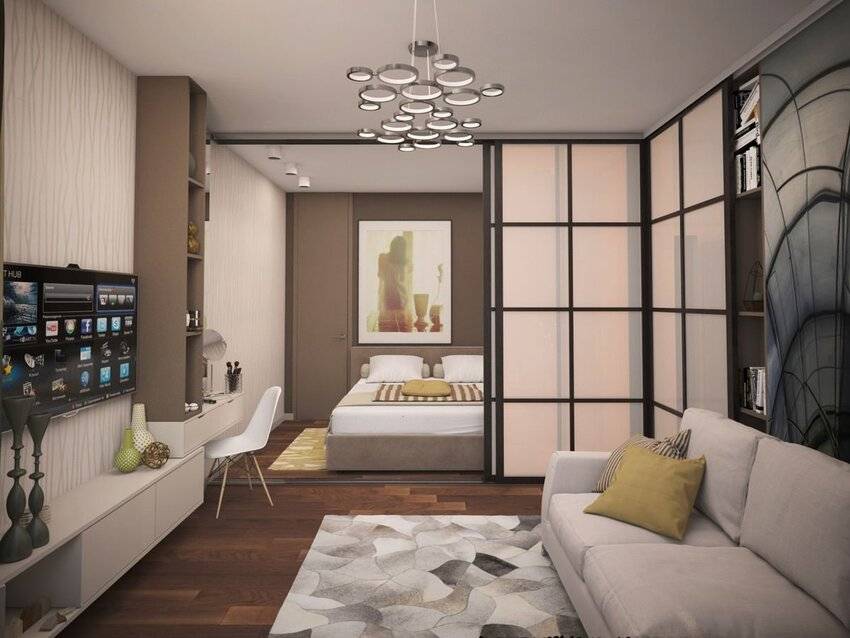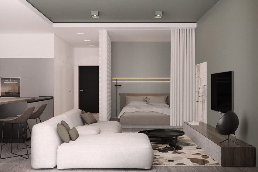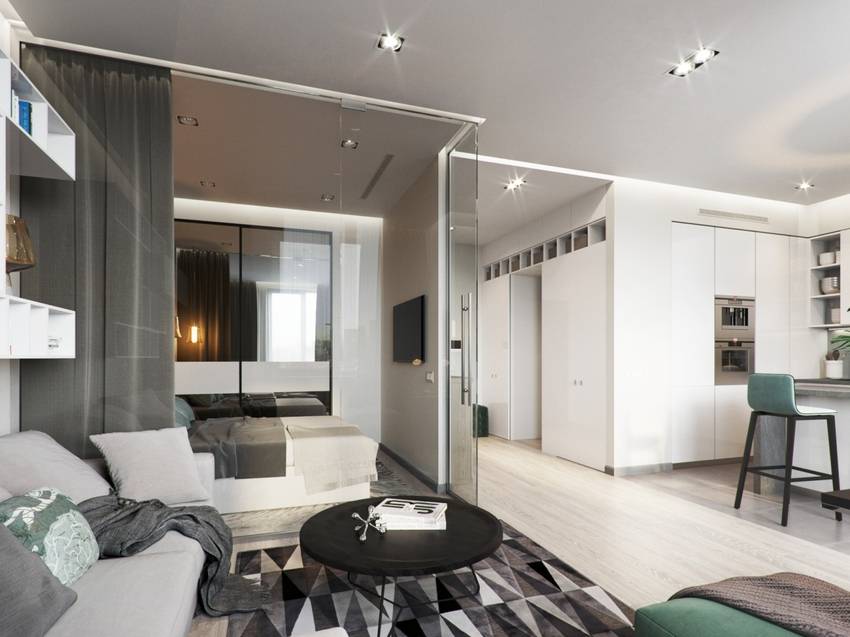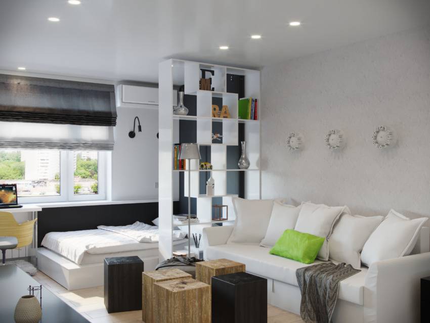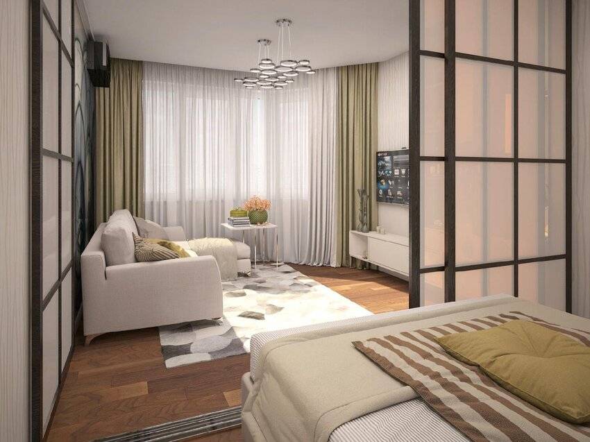 Все возможные способы совмещения спальни с залом делятся на две основные группы: