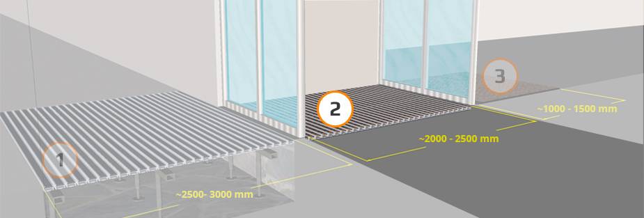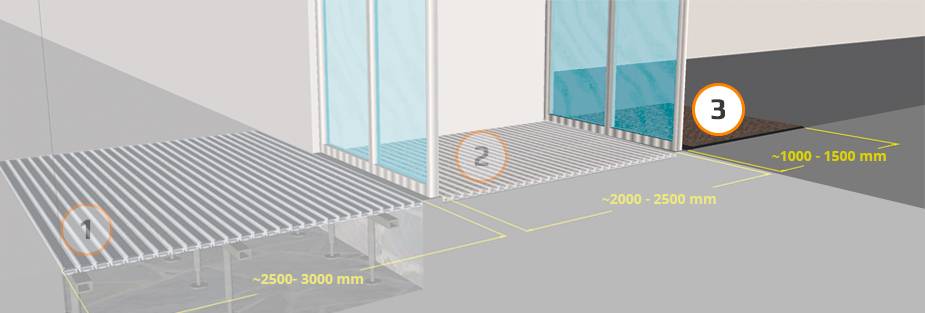 - место расположения (перед самым входом часто укладывается решетка, а во 2 и 3 зонах – коврики).