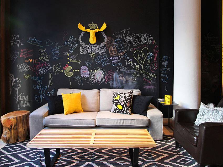 Грифельные краски широко используются не только в домашних условиях, но и применяются для отделки публичных заведений: кафе, баров, ресторанов, офисов.