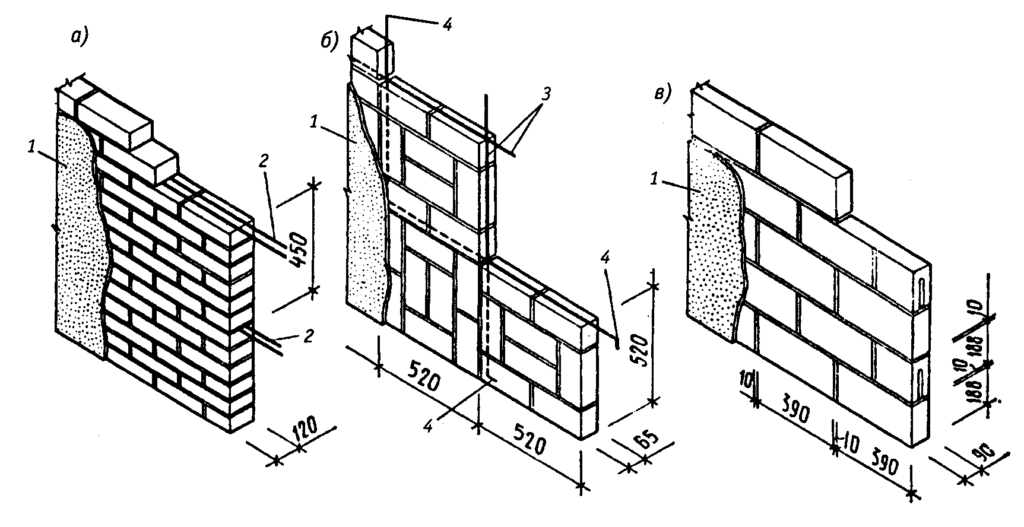 - Возводите внутренние стены, обеспечивая стыковку с внешним рядом на 50% длины блока. Укрепляйте арматурой стыковые участки.
