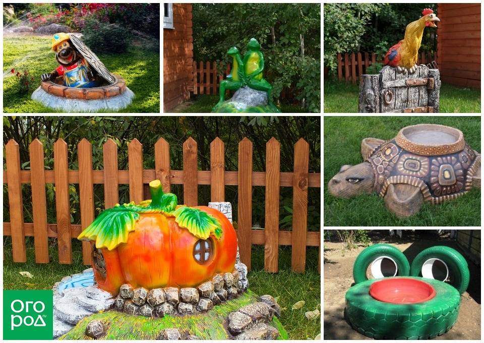 При желании выполнить декор септика ярко и выразительно можно приобрести специально для этого предназначенные декоративные фигуры. Стоят они дороже и зачастую весят больше, так что транспортировка и монтаж в этом случае сложнее. В качестве материала для их производства используется металл, пластик, бетон, керамика и гипс. Далеко не всякая скульптура подойдет для Вашего участка, но это обстоятельство с лихвою компенсируется широким разнообразием подобных изделий.