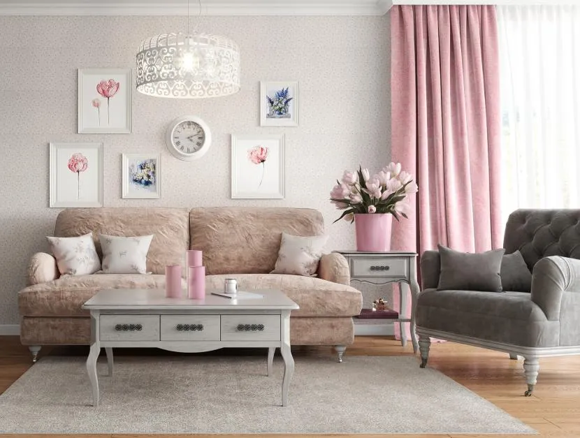 Чтобы оформить комнату в стиле прованс, достаточно купить виниловые полотна в маленький цветочек. Вариант с химическим тиснением устойчив к воздействию ультрафиолета и не боится влаги.