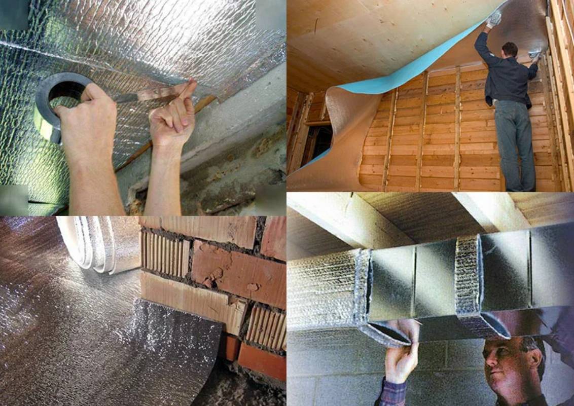 Благодаря высоким эксплуатационным характеристикам, фольгированный материал используется при выполнении работ внутри и снаружи здания. Выбор разновидности зависит от сферы применения. Так, для устройства напольного покрытия выбирается изолон с теплоотражающей плёнкой. При монтаже лист располагают таким образом, чтобы она оказалась сверху.