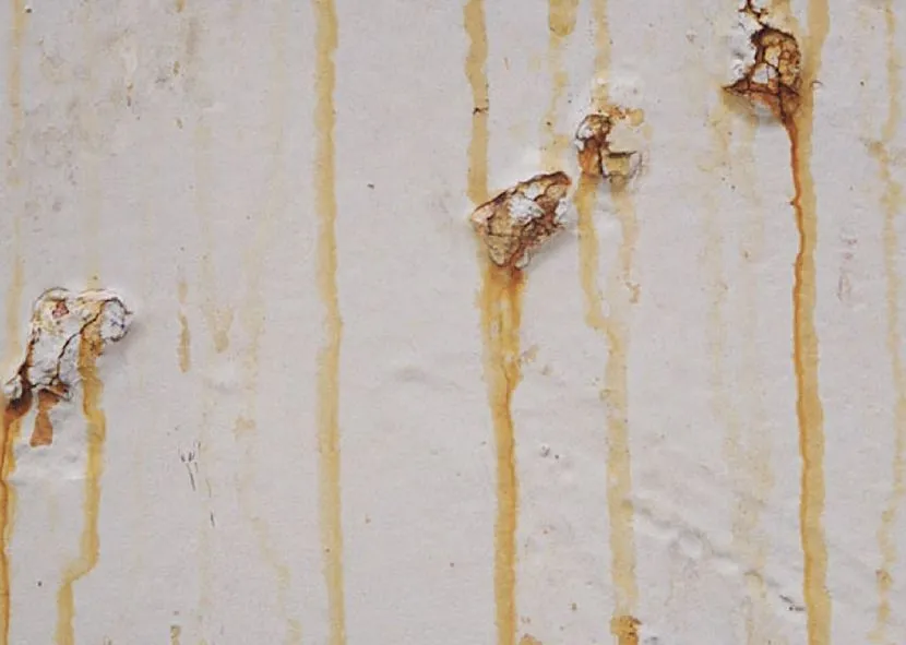 Причиной появления темных, коричневых пятен является ржавчина. Бороться с уже проступившими пятнами нет смысла: их необходимо удалить и обработать стену следующим образом:
