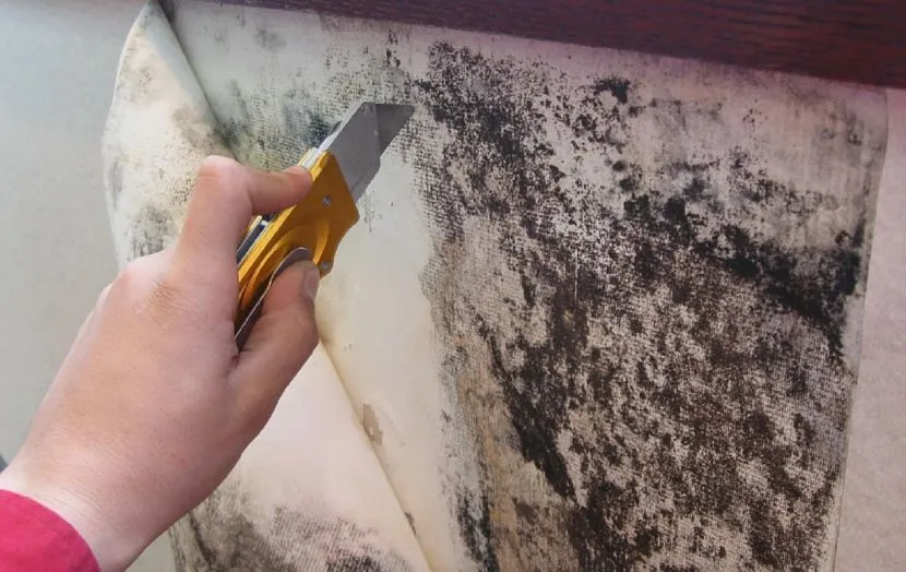 Темные, почти чёрные пятна свидетельствуют о том, что покрытие поражено грибком или плесенью. В подавляющем большинстве случаев, плесень находится под обоями, поэтому чтобы провести дезинфицирующие работы придётся полностью менять обои. Как вывести? Действовать необходимо следующим образом: