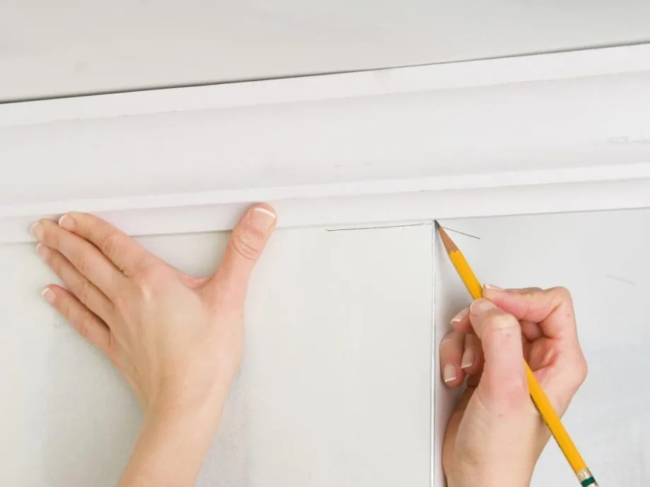 галтель прижимается максимально плотно к смежной стене, а место пересечения линий отмечается карандашом или ножом;