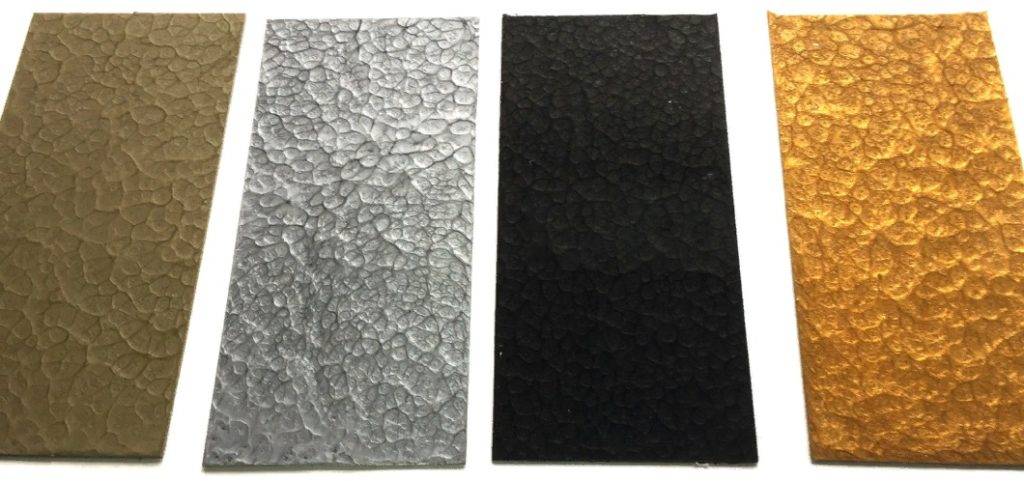Молотковое покрытие применяется в декоративном оформлении интерьеров и дает эффект многочисленных ударов молотка. Оно дает хорошую защиту от воздействия внешних факторов и его можно использовать вместе с разными видами краски.