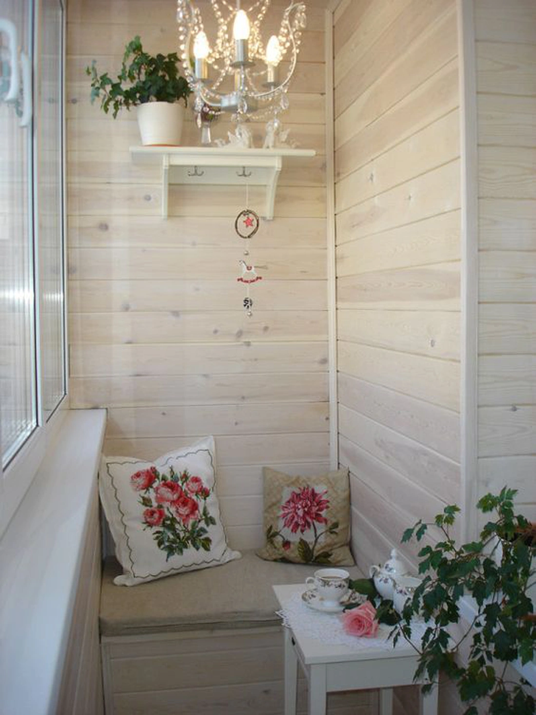 - Под светлое дерево. Есть специальные составы, которые наносятся поверх вагонки и выравнивают, осветляют цвет древесины. Светлая древесина уместнее на балконе, поскольку она не загромождает пространство.