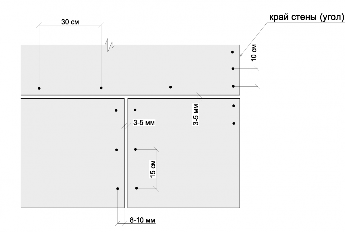 Если при фиксации листа саморезами они попадут в швы, то долго они не продержатся.Клеевой состав на основе гипса при контакте с цементным раствором не будет обладать необходимой адгезией из-за большой разницы составов раствора и клея. В результате гипсовый клей отслоится.