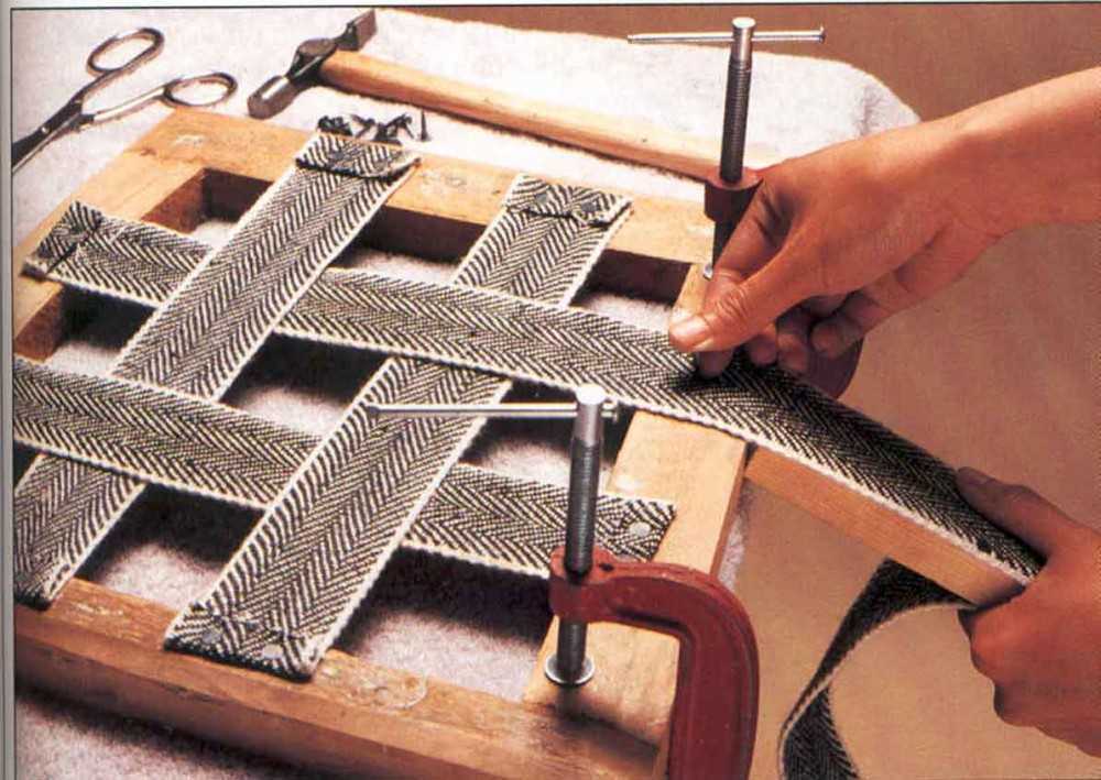 - Выполняя работу по замене обивки, по надобности можно отремонтировать каркас или пружинный блок.