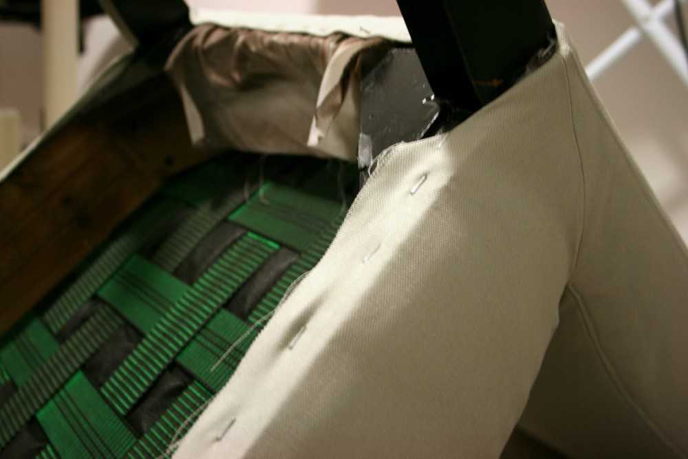 - трудоемкость процесса – если креслице сильно повреждено, в нем заменяют не только ткань, но и «начинку» – поролон, пружины, при этом полностью разобрав;