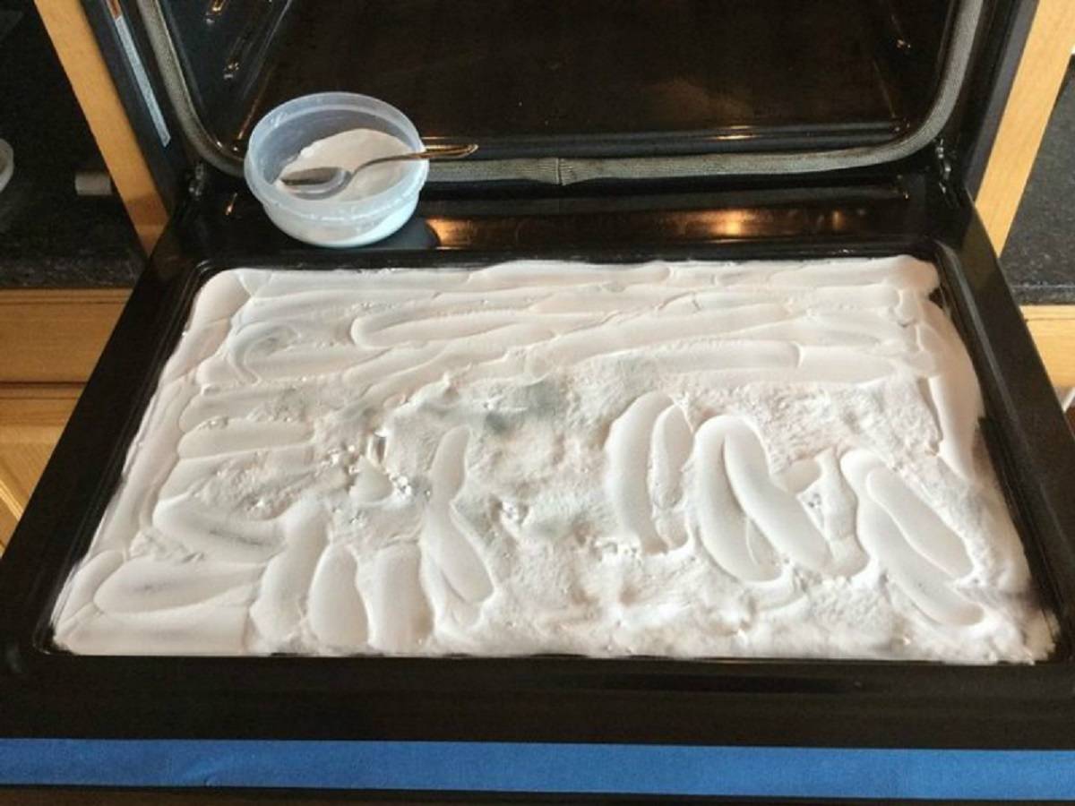 Оригинальный способ избавиться от грязи на духовке – разрыхлитель для теста.