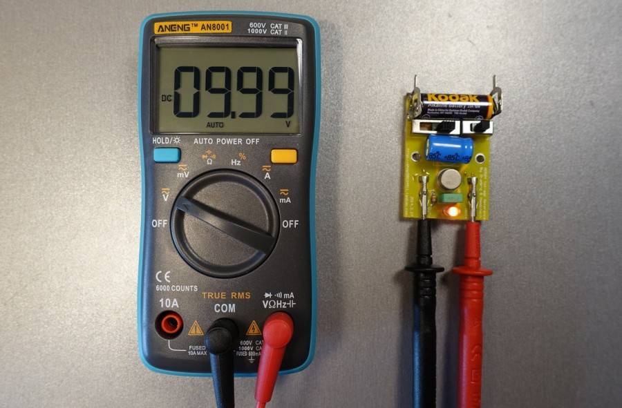 Высветившееся на дисплее число — величина напряжения в вольтах. Знак «минус» говорит о том, что полярность была нарушена. Если мультиметр поддерживает функцию удержания, значение можно зафиксировать кнопкой HOLD. Это удобно для большой цепочки измерений. Для точности рекомендуется провести 2-3 попытки.