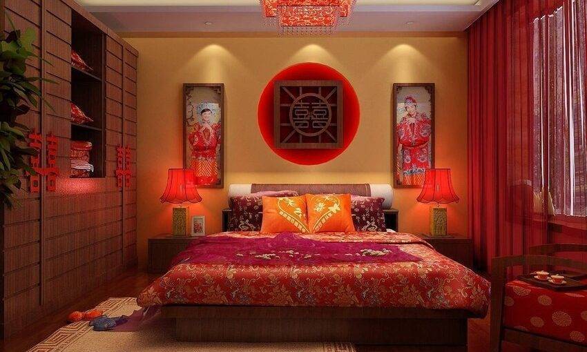 Спальня, оформленная по фэн-шуй, должна находиться в секторе любви и семьи, то есть где-то между восточной стороной света или юго-западной. В комнате должны царить чистота, уют и порядок, в интерьере недопустимы сломанные вещи, а декор оформляется в соответствующих цветах. Для маленькой спальни следует выбирать светлые тона, для больших помещений подойдут более насыщенные оттенки, но в любом случае цветовая гамма должна быть гармоничной. Так как именно в спальне кровать является энергетическим центром, то она должна преобладать над другими предметами интерьера.