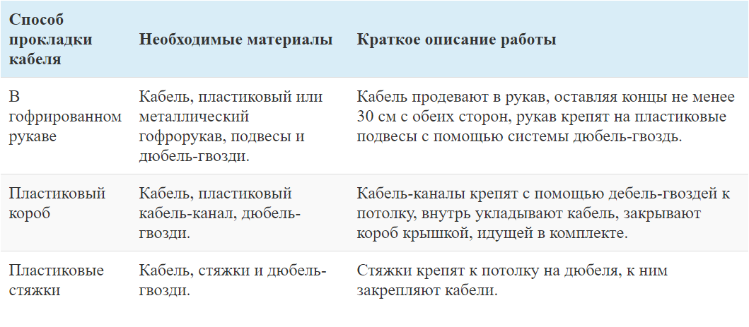 Способы прокладки кабеля под натяжным потолком и необходимые для этого материалы