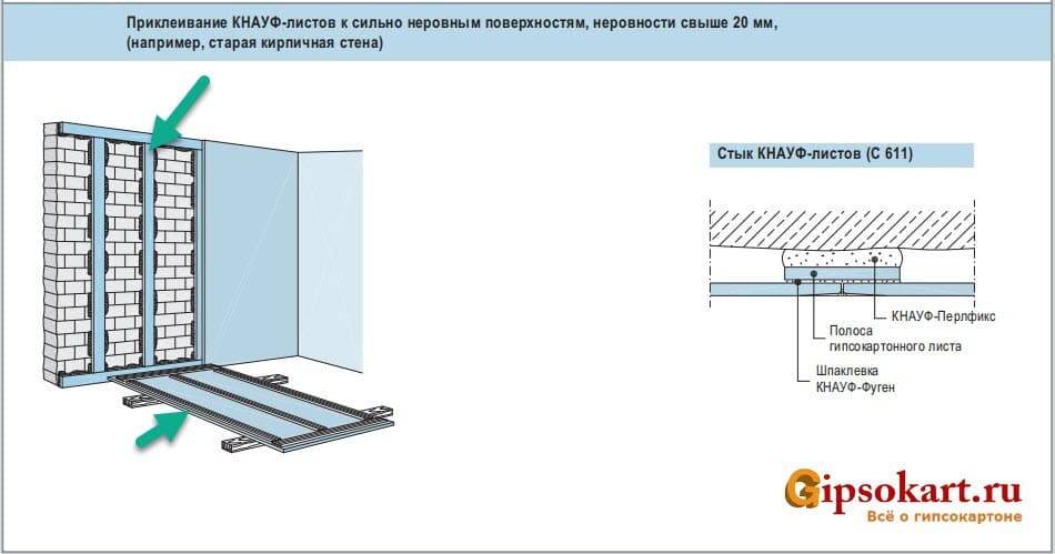 Выполнять приклеивание ГКЛ рекомендуется в следующих случаях: