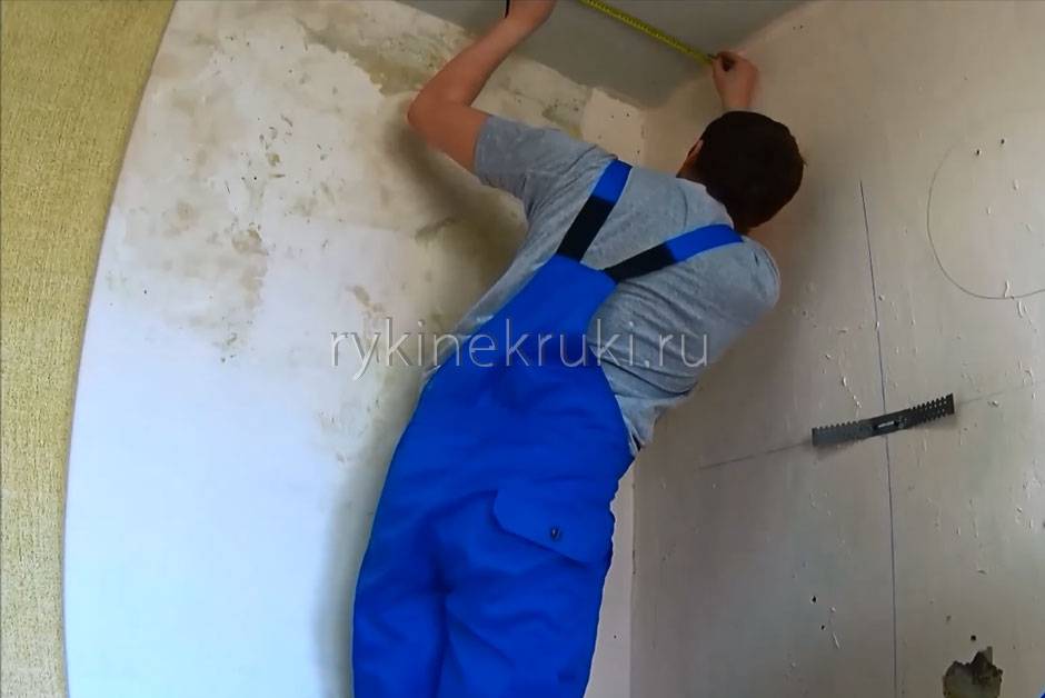 На потолке должна образоваться прямая линия от одного края стены до другого.