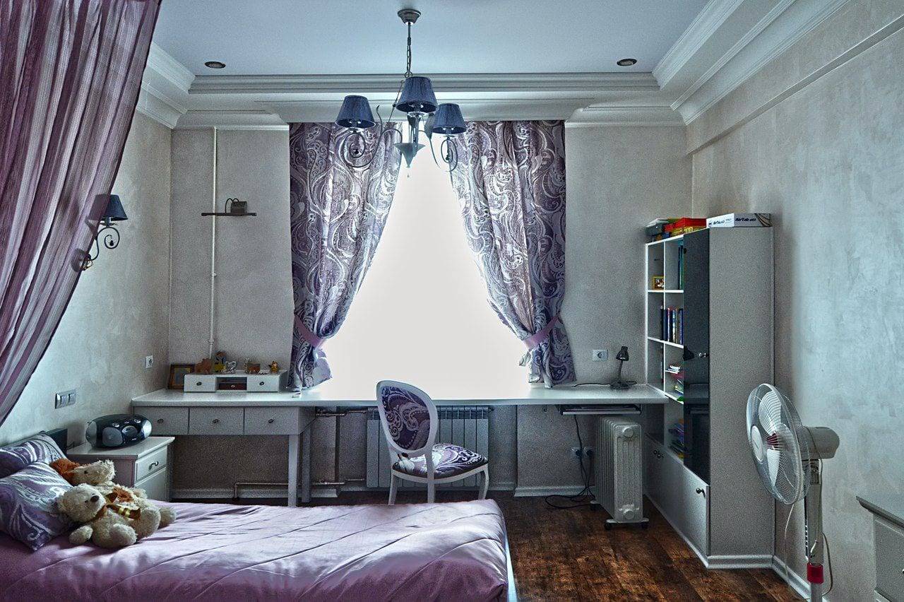 В комнату подростка допустимо вешать полотна, не доходящие до пола на 1 см. Если у окна находится письменный стол, уместно использовать гардину, длина которой чуть ниже подоконника, или римские шторы. Рекомендуемая ширина занавески в детскую — 1,5‒2 длины карниза. Складки не надо делать слишком объемными. В качестве крепления штор подойдут люверсы либо петли. С ними ребенок сможет легко раздвигать полотна.