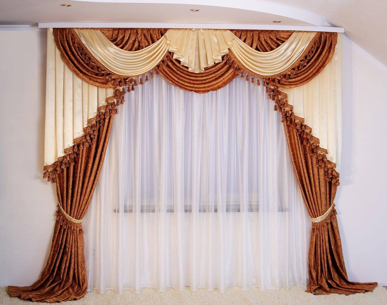 Занавески должны подходить под интерьер. Для гостиной отлично подходит классический вариант декорирования: