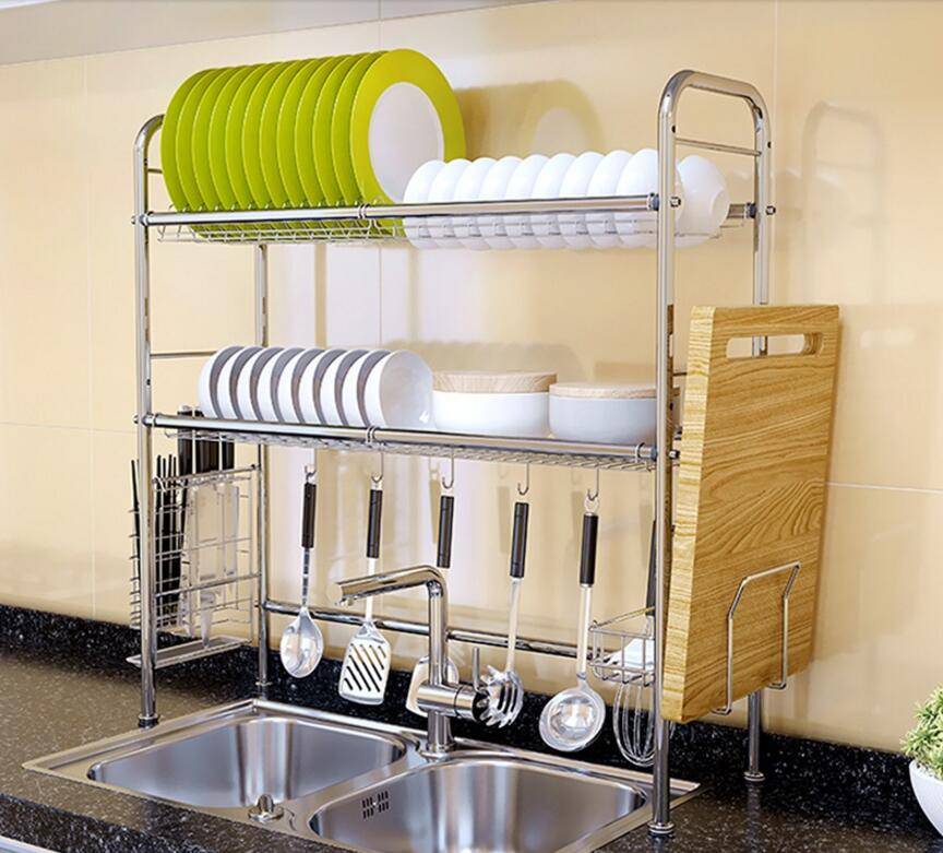 Как сэкономить пространство в маленькой кухне и незначительную по размерам рабочую поверхность, когда нужно расположить где-то вымытую влажную посуду. Половину поверхности тумбы с мойкой очень часто занимает специальная подставка для влажной посуды. Но она имеет объемные габариты. Ее можно заменить узкой полкой для влажной посуды, которая размещается за смесителем по всей длине тумбы. По ширине в нее вмещаются 3–4 тарелки, но благодаря длине, в ней могут разместиться и чашки, и стаканы, и тарелки. Плюс, декоративная деревянная полочка станет украшением любой кухни. Можно поставить полку, как на фото.