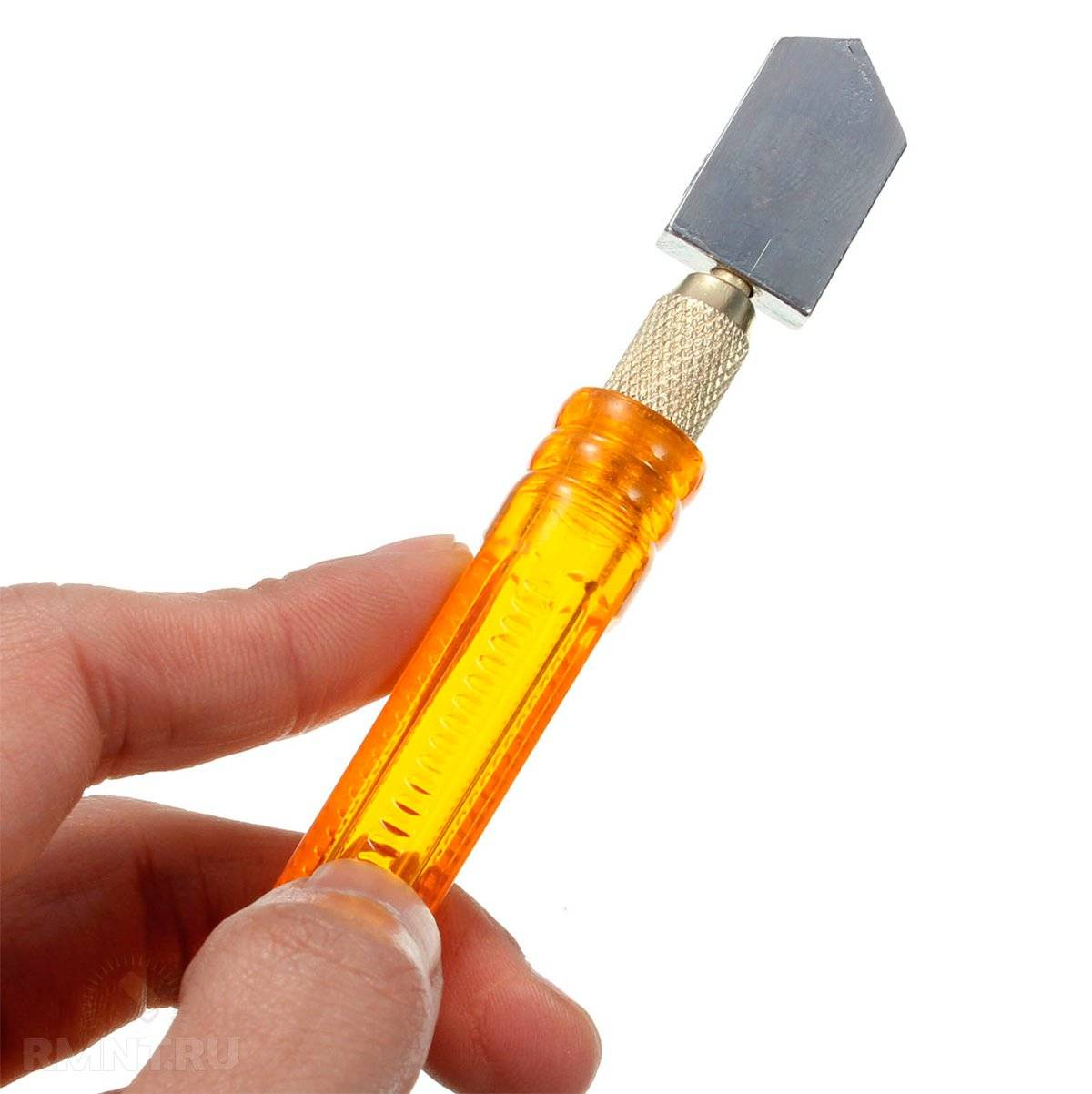 Такой стеклорез имеет металлический ролик диаметром чуть больше 6 мм. Таким инструментом можно резать тонкое стекло – не более 4-х мм толщиной.