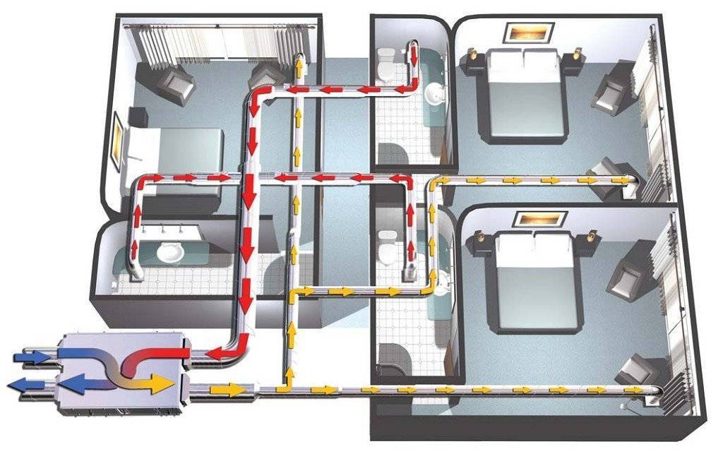 В коттеджах и частных домах есть несколько основных вариантов устройства вентиляции.