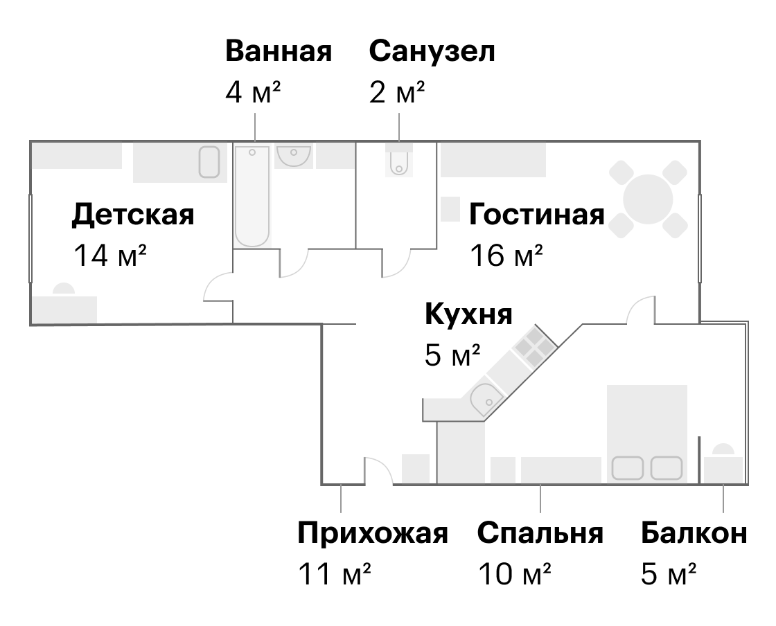 Первая часть с проектом квартиры и расположением стен была готова через месяц. Нам предложили четыре варианта — они были нормальные, но не цепляли. В процессе дискуссии дизайнеры предложили пятый вариант: перенести кухню в коридор и объединить ее с гостиной. А на месте кухни сделать спальню и объединить ее с балконом.