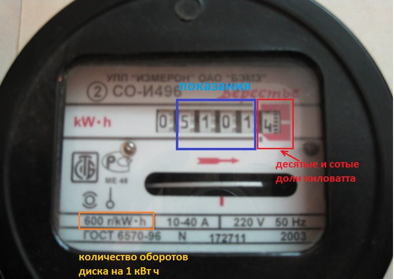 И механическое, и электронное табло отображают киловатт-часы с точностью до десятых. На механическом отсчетном устройстве последнее кольцо выкрашено в красный — чтобы пользователь не путался и понимал, что оно отображает десятые доли. Но в абонентский отдел подается только целое значение, так что красный диск, чтобы не запутаться, можно даже закрасить.