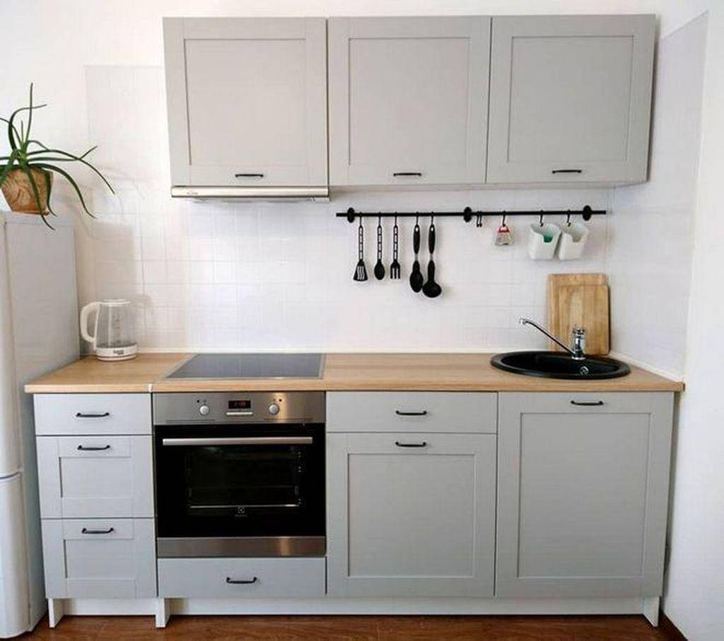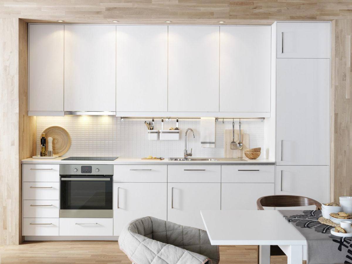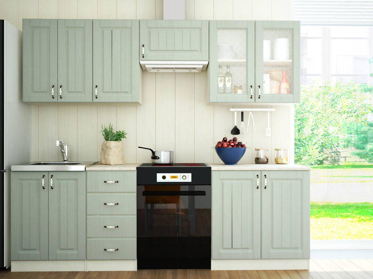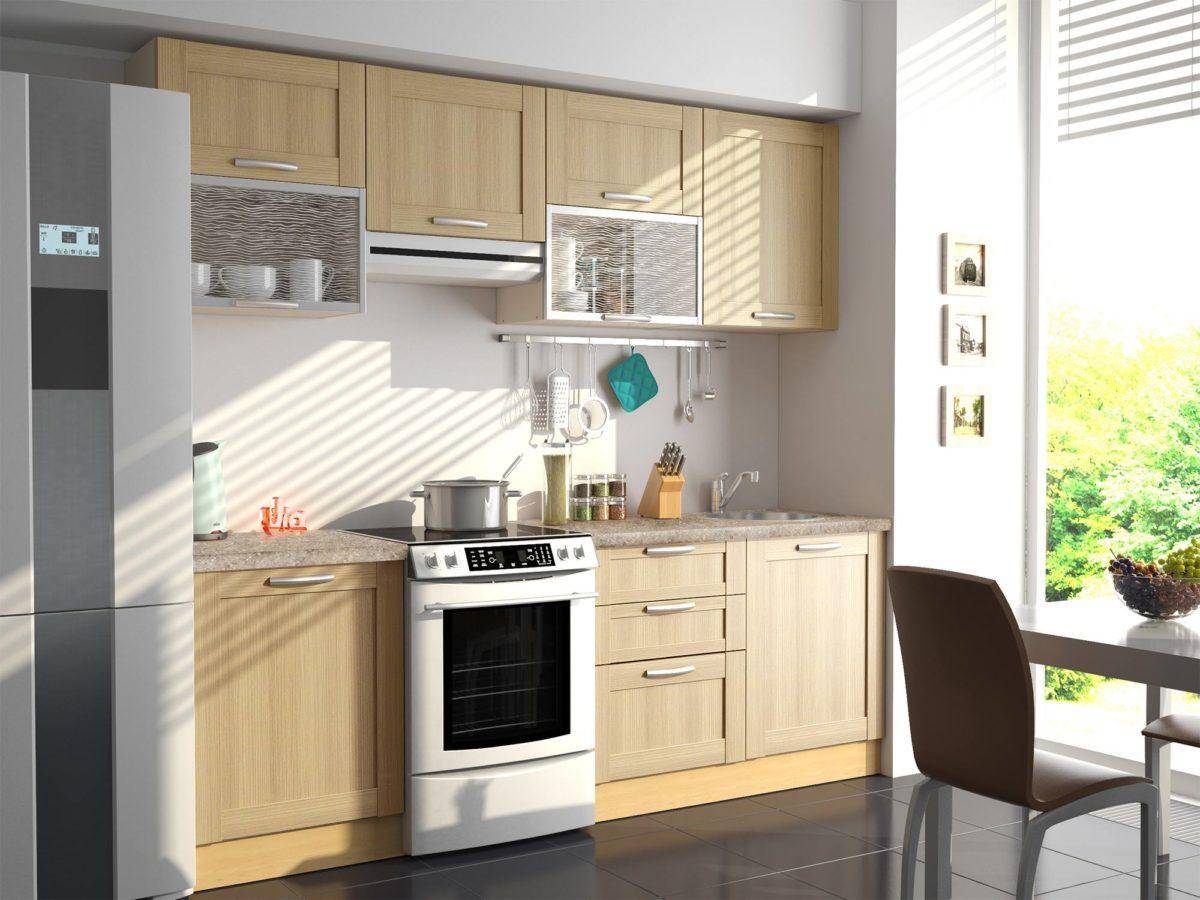 Самой простым способом того, как сэкономить на кухне является покупка линейного гарнитура, оснащенного распашными дверцами.