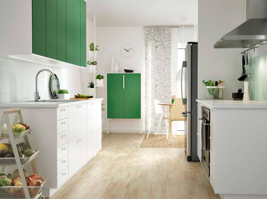 Это единственный способ использовать вытянутое помещение максимально эффективно. Подходит для кухонь площадью не менее 9 квадратных метров и шириной не менее 2,5 метра. После установки кухонного гарнитура ширина прохода не должна быть меньше 120 см.