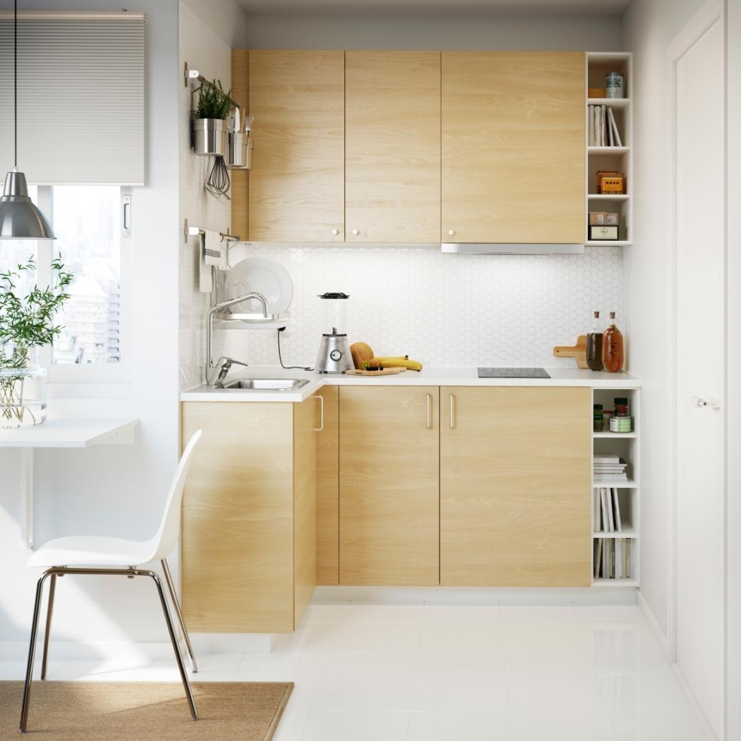 Лучше всего расположить объекты в таком порядке: холодильник, рабочий стол, мойка, второй рабочий стол и плита. В маленьких кухнях раскладной обеденный стол монтируется в противоположную стену, высвобождая тем самым полезное пространство.