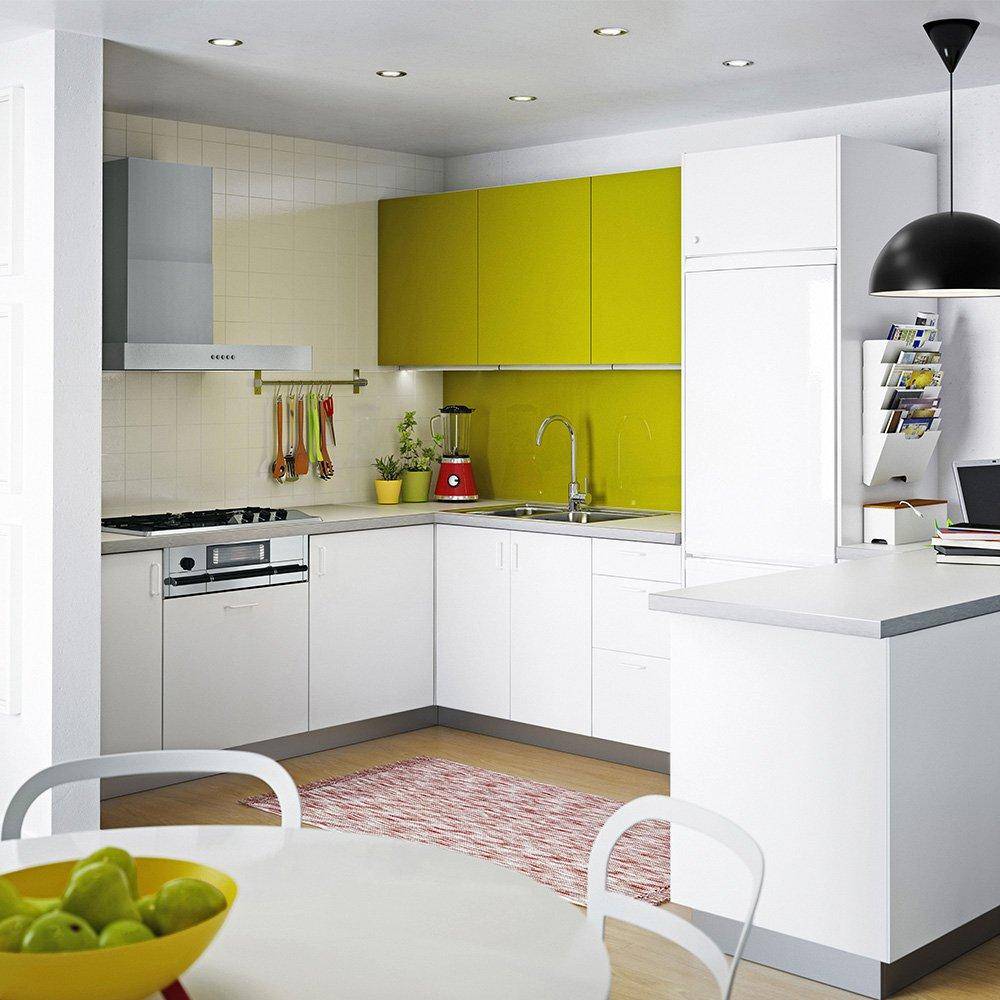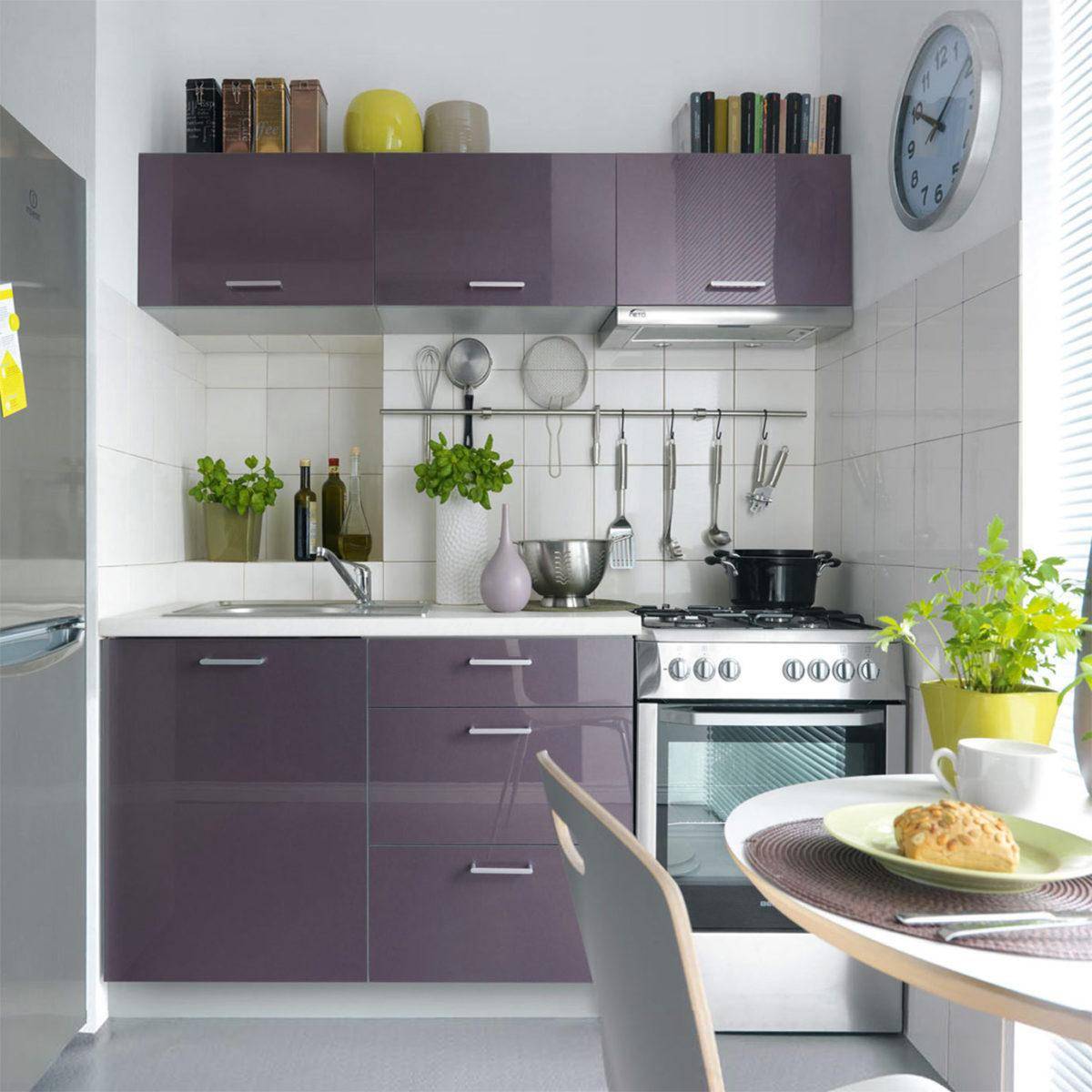 - Экономные гарнитуры обычно производят из таких модулей, которые вписываются в стандартные квартиры, даже с совсем маленьким кухнями;