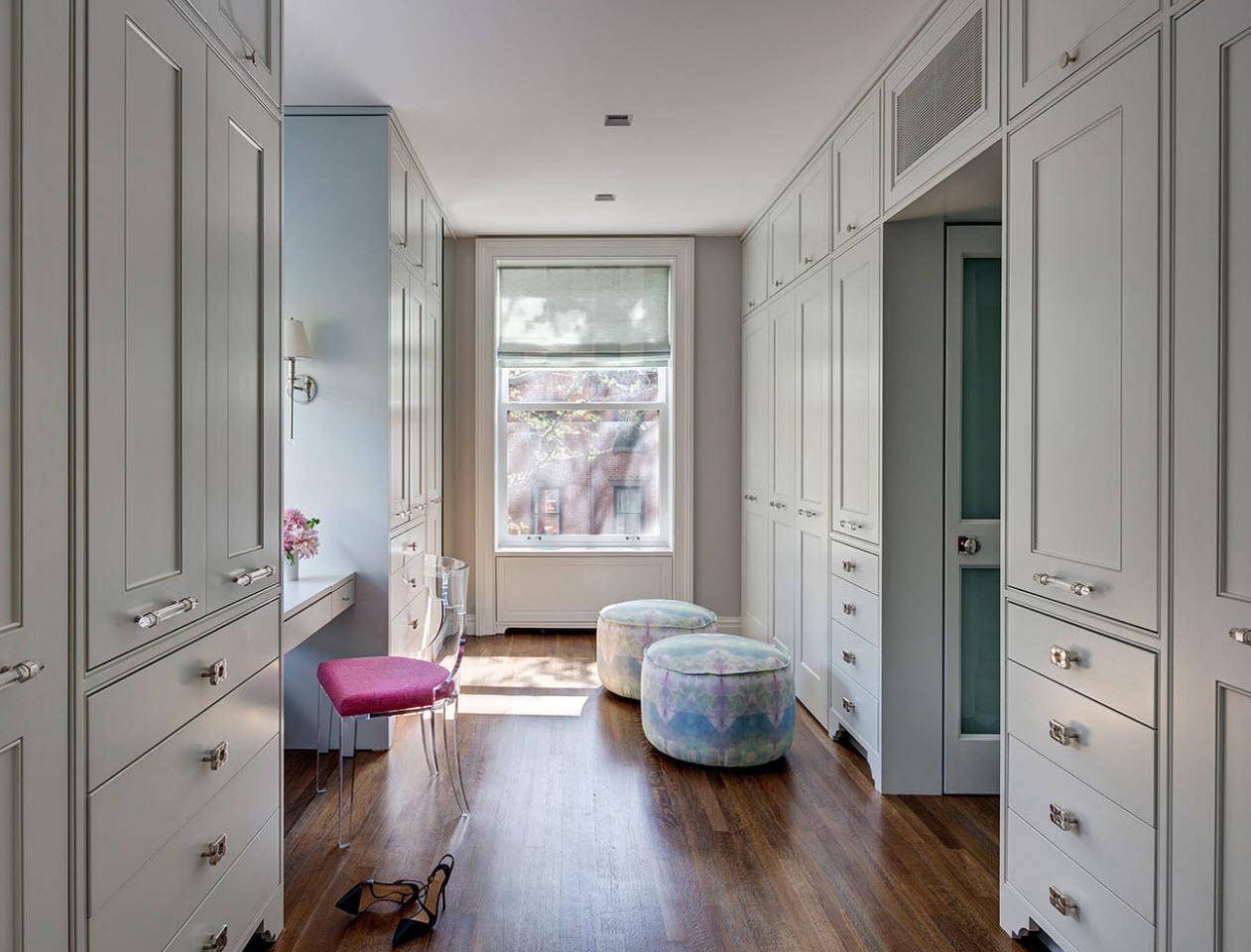 Никаких обоев с узорами и рисунками, никаких пано из плитки, ярких цветов и сочетаний кучи отделочных материалов. У вас всегда будет ещё одежда, обувь и другие предметы, плюс зеркала, которые умножат всё это на 2.
