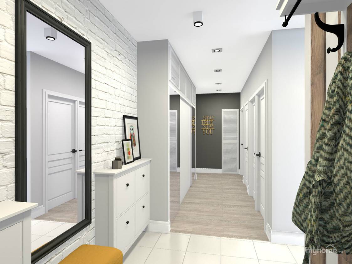 Однако квадратный коридор сложно разбить на отдельные зоны. Рекомендуется использовать минимальное количество мебели чтобы не загромождать пространство.