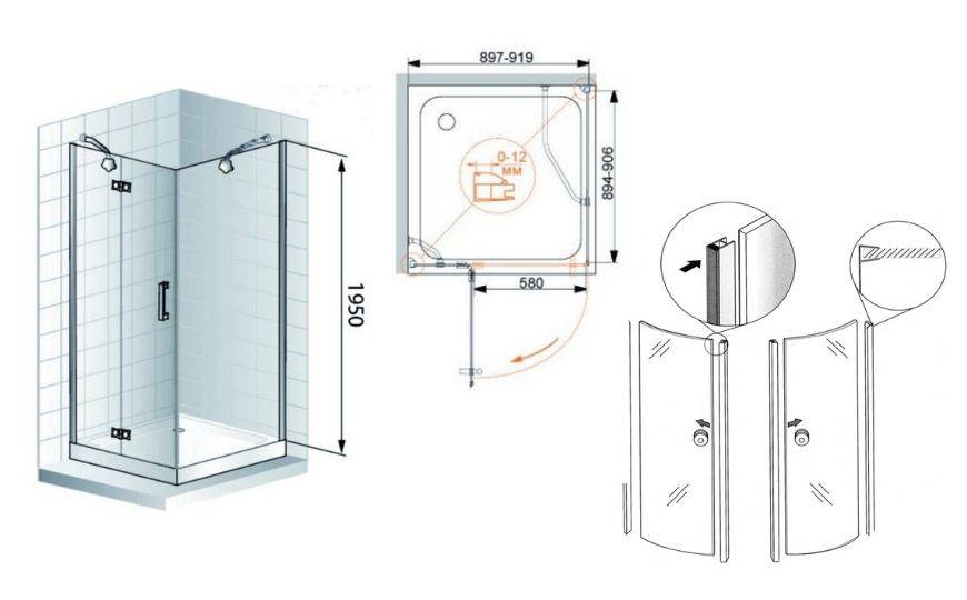 Немаловажно обратить внимание на качество и просто наличие герметизирующих элементов на дверцах и поддоне кабины. Минимизировать протечки и попадание воды на пол, призваны и бортики по краям поддона. Желательно, чтобы их высота была порядка 1-2 см, этого вполне достаточно, чтобы задержать попавшую в них воду и отвести ее через специальные желобки в поддон