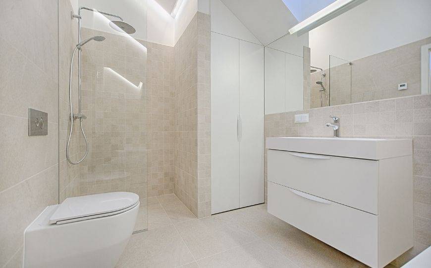 Или рассмотрим другой пример — с высотой потолков у вас все в порядке, но сама ванная комната достаточно маленькая. Вы решили сэкономить на свободном пространстве и купили душевая кабинку вместо ванны.