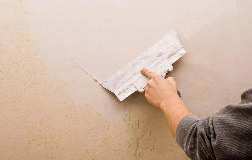 - Далее рекомендуется аккуратно простучать стены молотком. Это необходимо для того, чтобы найти слабые ненадежные участки. Если на стене имеются глубокие трещины и рытвины, то их лучше заделать. Можно использовать ту же гипсовую штукатурку, только делать смесь более густой. Остальные дефекты легко скроются во время оштукатуривания.