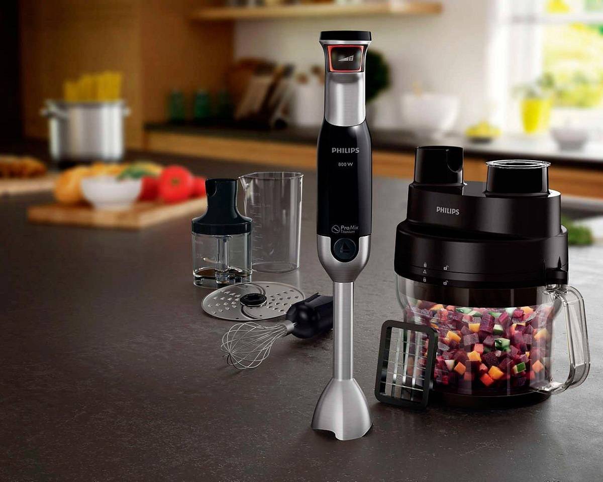 Бронзу в этом ТОПе лучших погружных блендеров получает — Philips HR2655/90 Viva Collection. Блендер мощностью 800 Вт отлично справляется с приготовлением пюре, супов, смузи, соусов и других блюд.