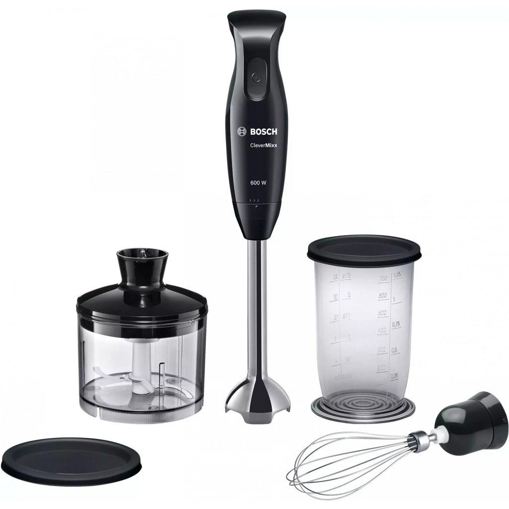 На первом месте в ТОПе лучших погружных блендеров располагается хорошая модель для основных бытовых задач — Bosch MSM26500B. Хороший блендер для основных бытовых задач. Для работы с мягкими, полужидкими и жидкими продуктами имеется классическая насадка «нога» с прочным лезвием и защитой от разбрызгивания. Она легко снимается и заменяется на венчик.