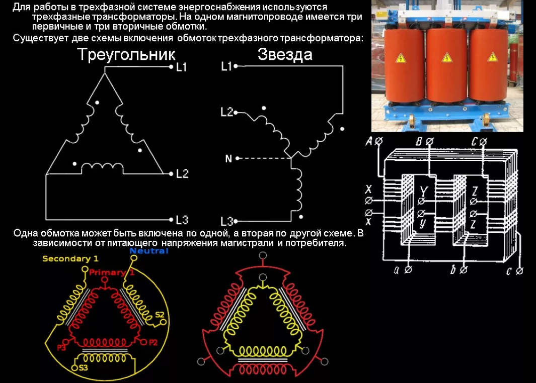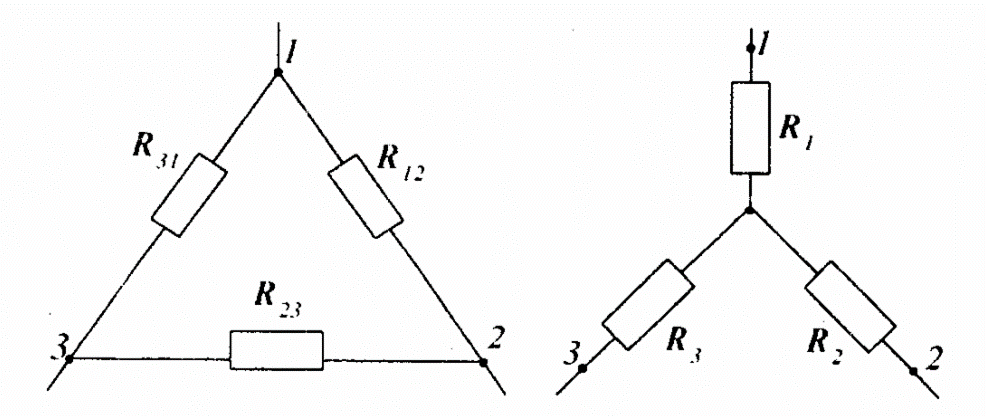 Каждая фаза соединяется с соседними. Сила тока от источника фазная, между собой-линейная.