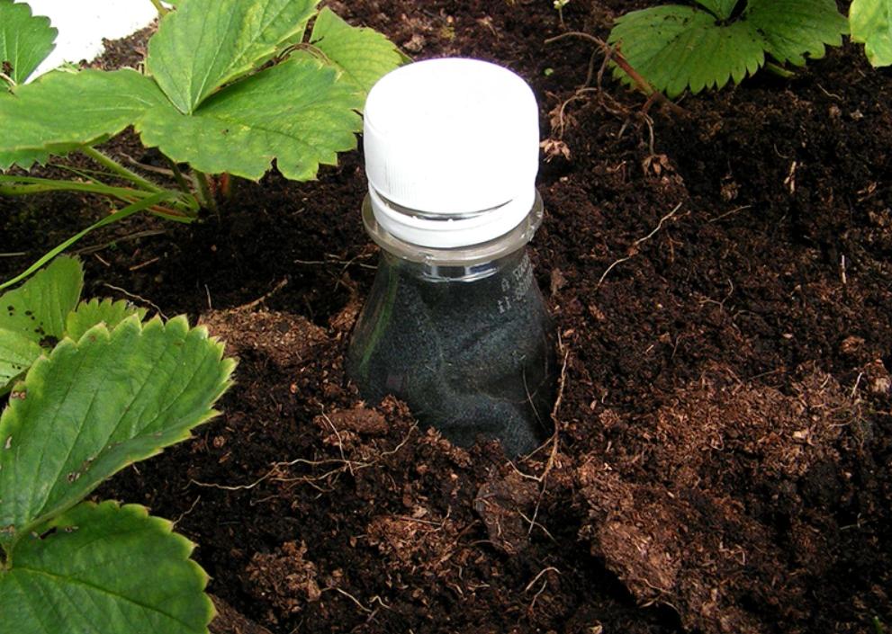 Еще один вариант заключается в подвешивании бутылки, с маленьким отверстием внизу, возле каждого растения. Более детально о способе рассказано в видео в конце статьи.